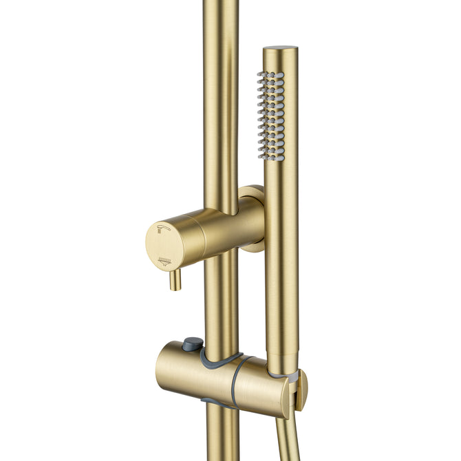 Transform your daily shower into a boutique hotel experience. Featuring a stunning, modern Light Brushed Brass finish, this dual shower system offers the ultimate combination of luxury and everyday practicality.