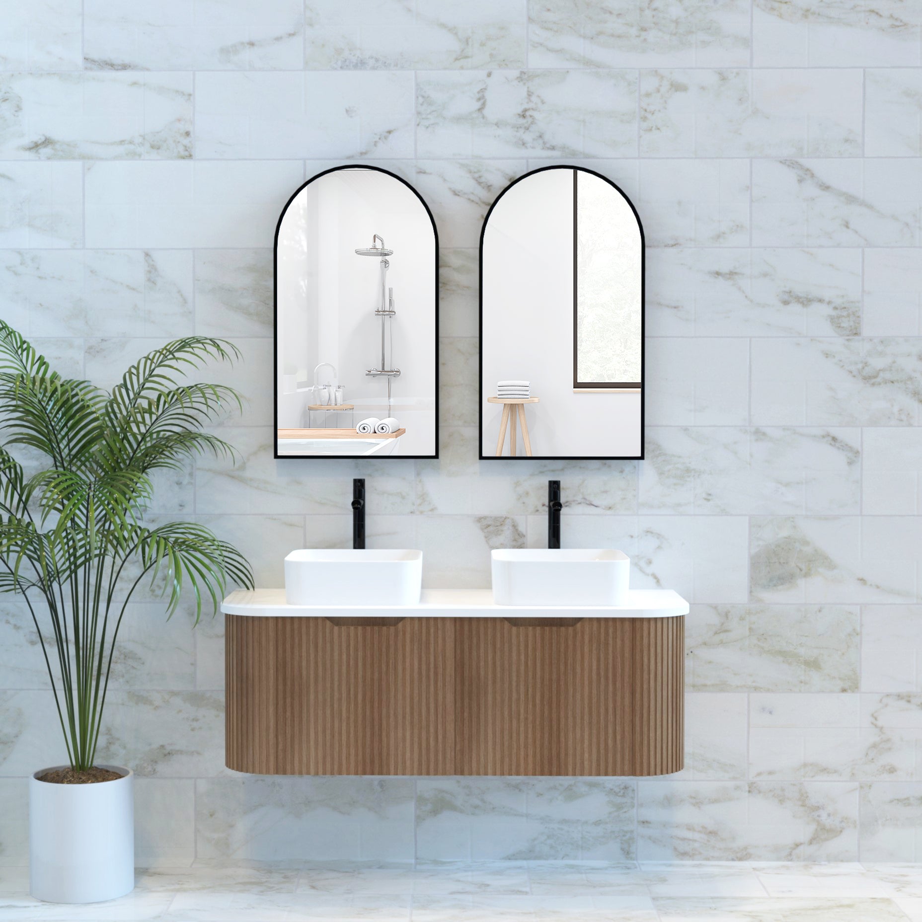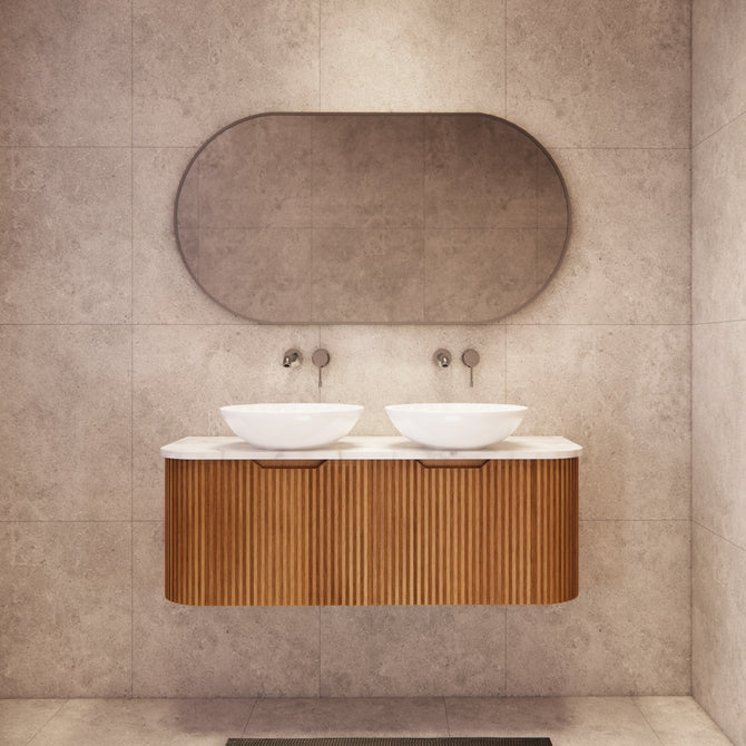 Bergen | Curve Solid Timber 1200mm Fluted Groove Double Bowl Wall Hung Vanity