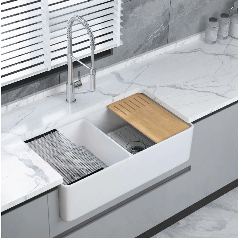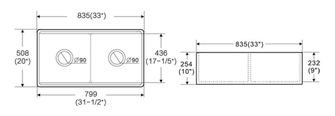 • This sink is reversible, so it can be installed with flat or ribbed/farmhouse side facing out