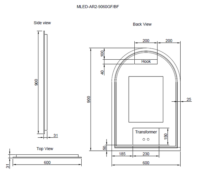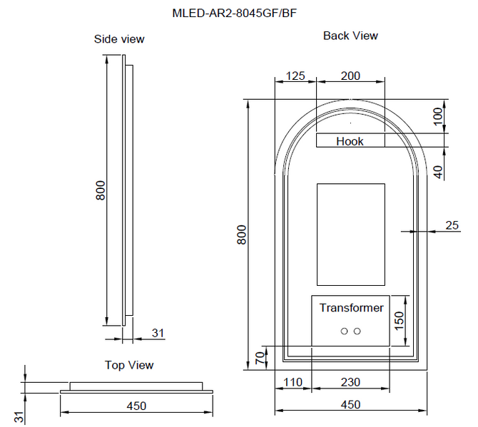 • Type: Framed LED Arch Mirror