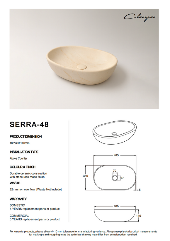 Serra-48 Above Counter Basin Matte Stone Marble